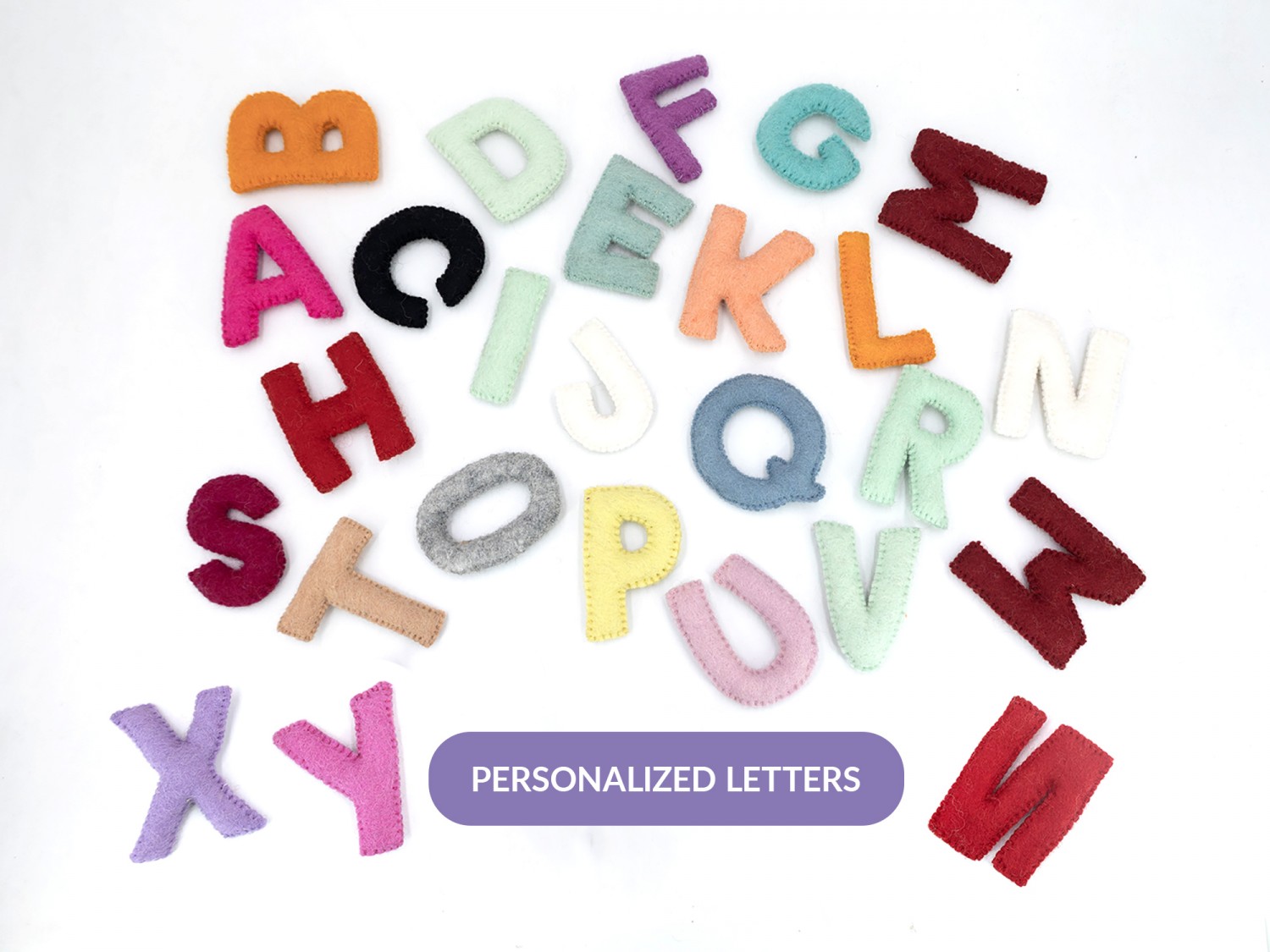 There are unlimited possibilities with our felt stitched letters. Felt alphabets are excellent for use as an educational exercise. The use of 100 % natural wool makes this suitable for children. Or use it as a beautiful backdrop for your name in a room! Pour your creativity for décor or do-it-yourself projects.