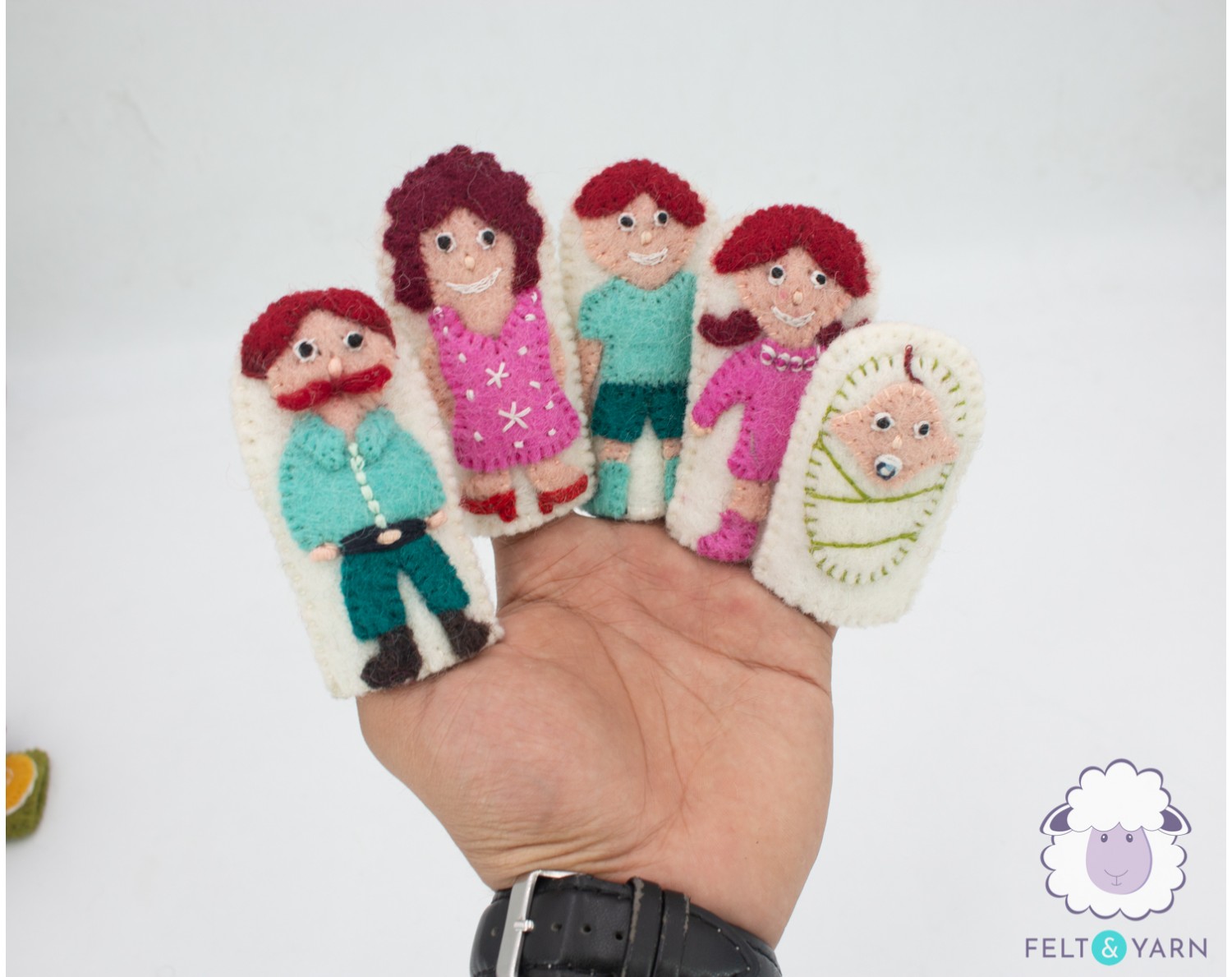 5 Members Family Wool Felt Puppets