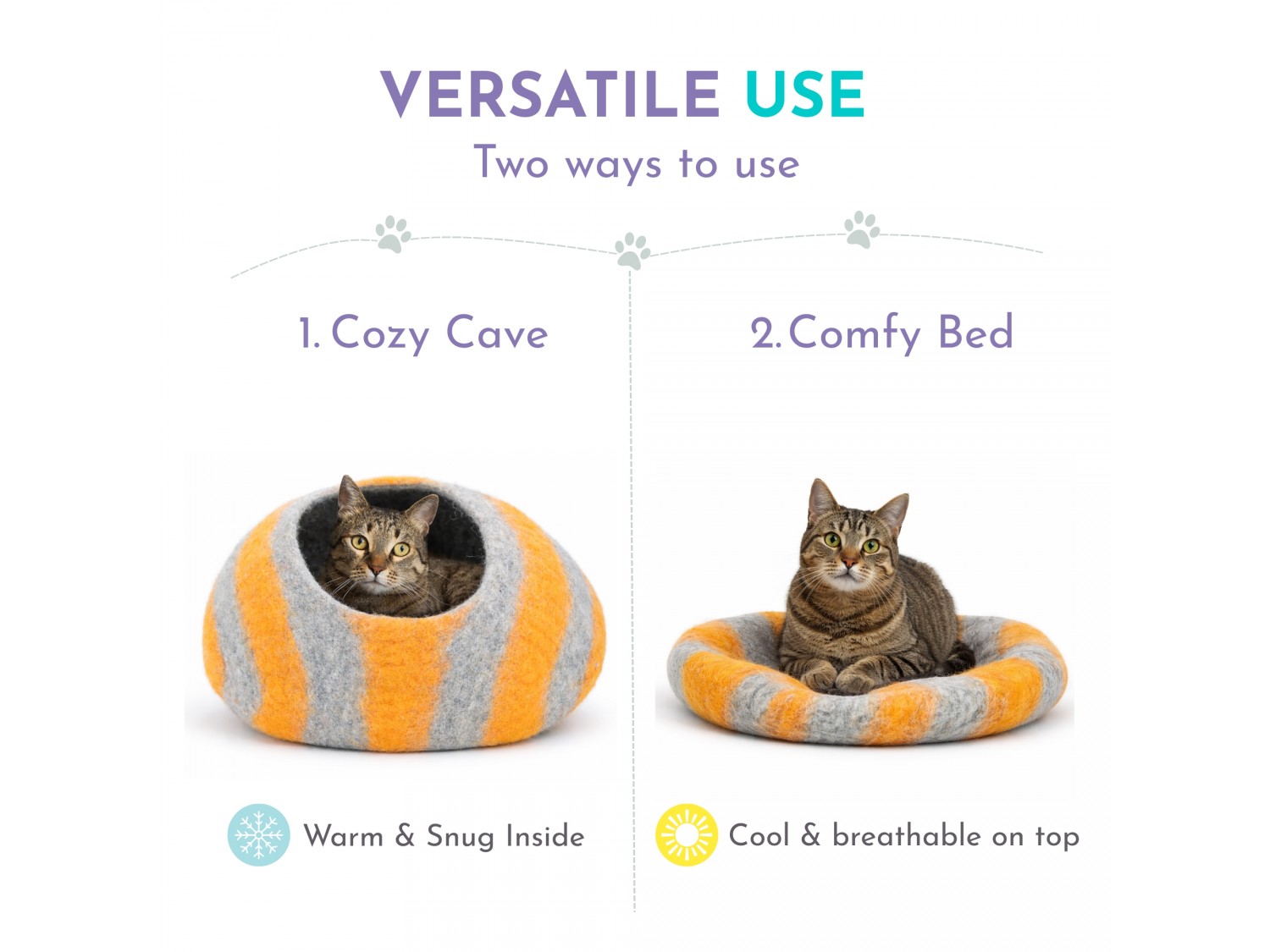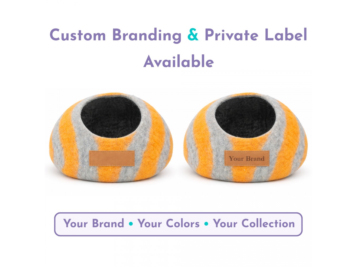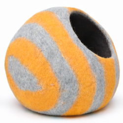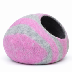 The Wholesale Striped Design Wool Felt Cat Cave is a contemporary enclosed pet housing solution developed for retailers, distributors, and private label brands seeking scalable wool pet products with visual variation. Featuring a rounded pebble-style silhouette with clean stripe accents, this design offers strong shelf presence while maintaining the enclosed comfort cats naturally prefer. Each unit is handcrafted from 100% natural sheep wool by skilled artisans in Nepal using traditional wet-felting techniques.