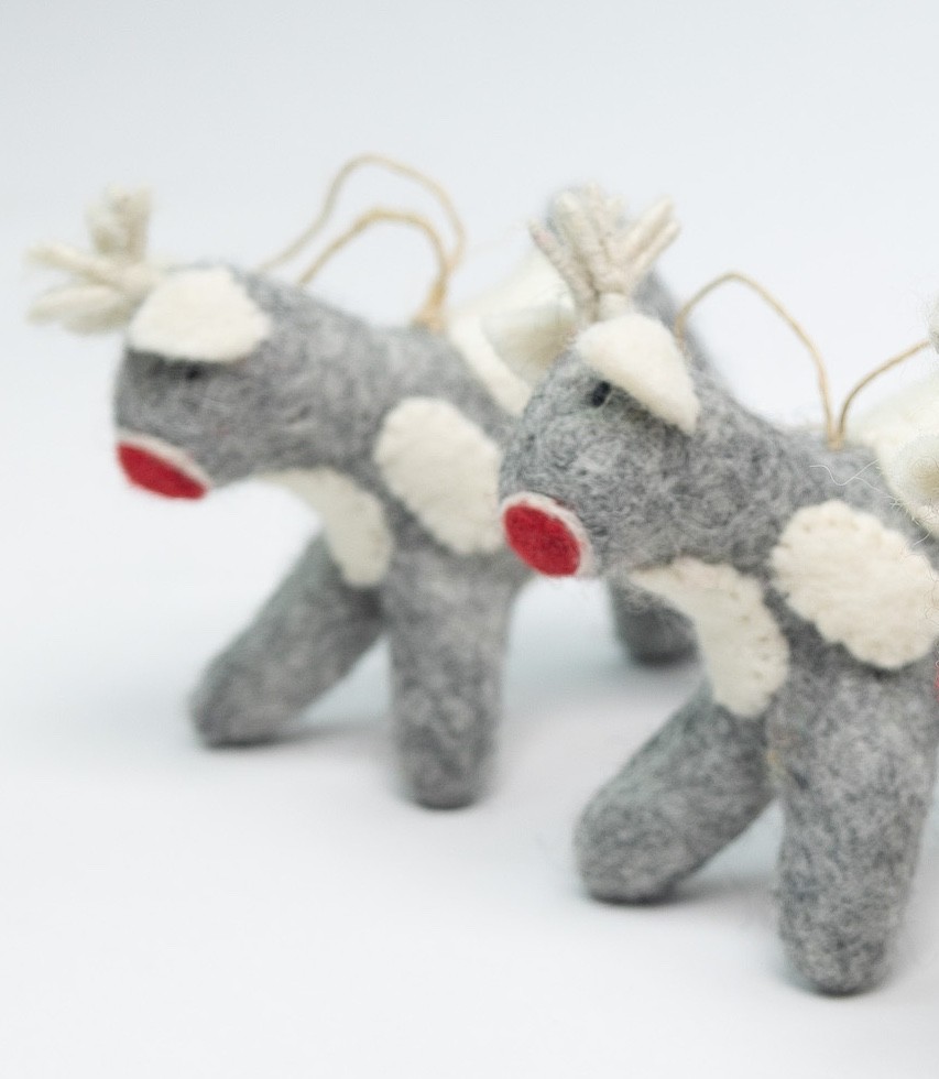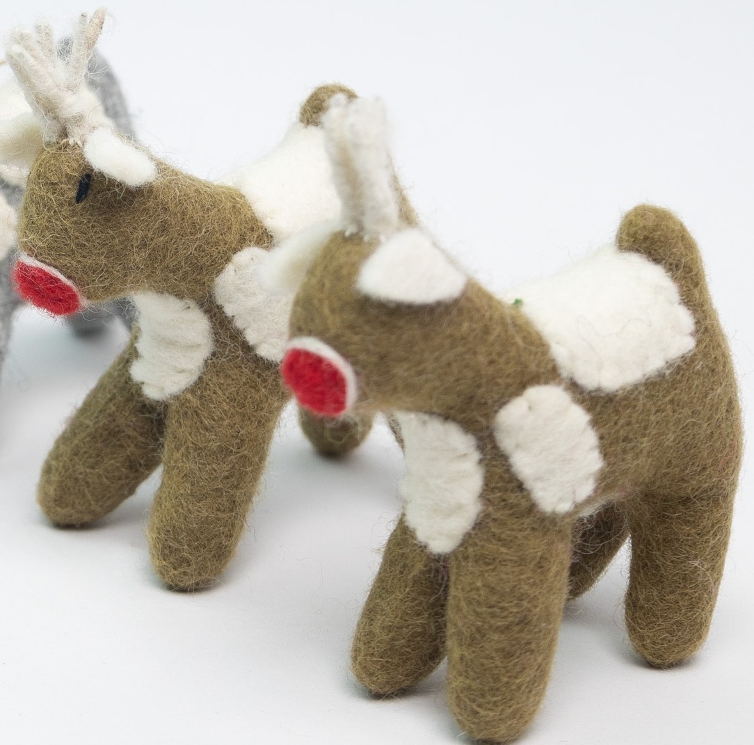 Add festive charm to your Christmas tree with our 12cm Handcrafted Felt Christmas Rudolph, a delightful hanging ornament that embodies the spirit of the season. Handmade by women artisans in Nepal, this felt Rudolph is a perfect addition to your holiday decor.