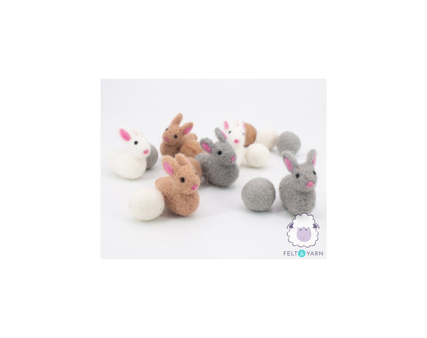 Wool felt bunnies are so fluffy and adorable that you can't just keep your hands off of them. These bunnies are best for craft supplies, ornaments, nurseries, or garlands. This long-eared bunny has blush pink-colored details that are perfect for your garland and keyring chains.