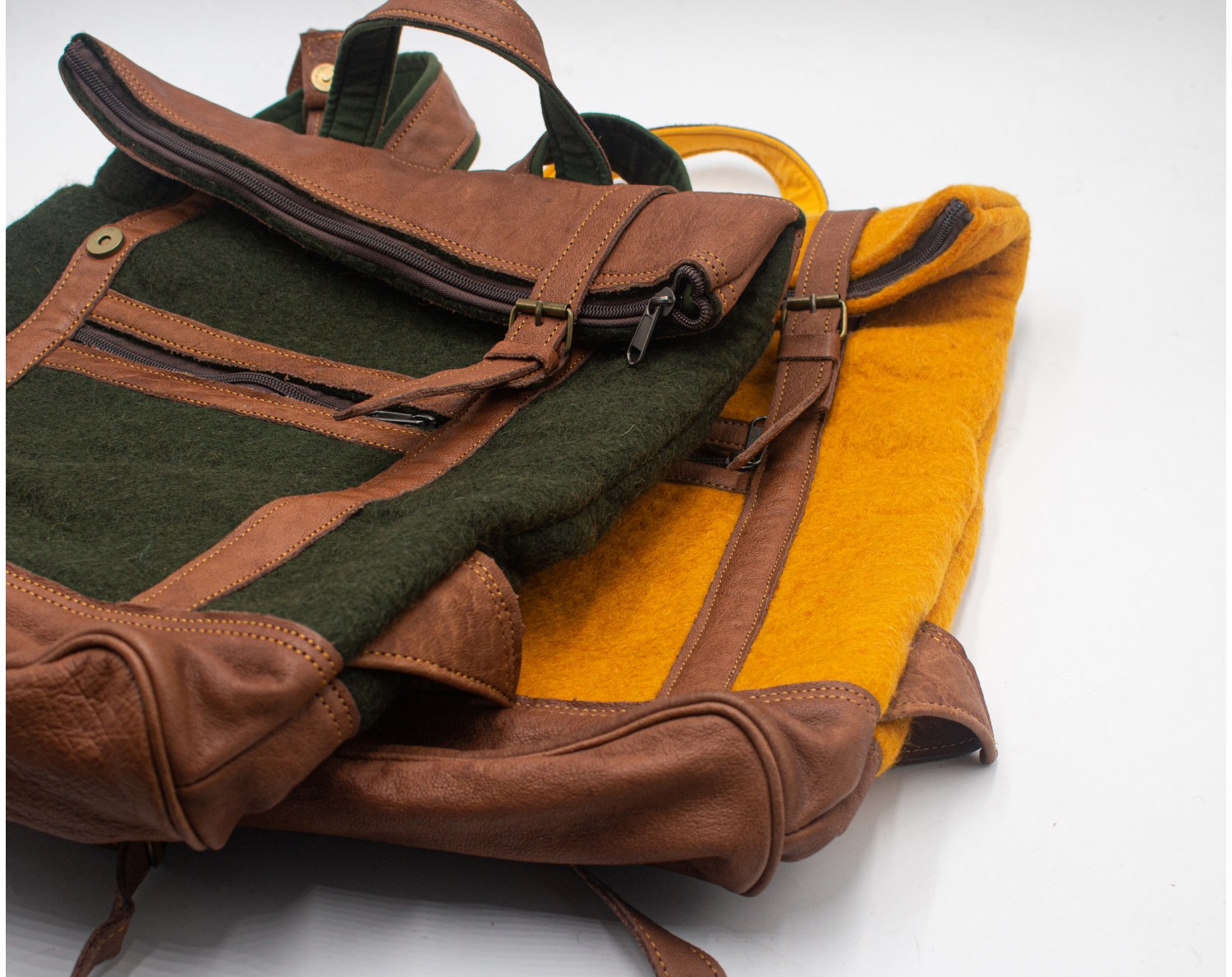 Our Handmade Wool Felt Backpack with Leather Strap is carefully handcrafted by skilled women artisans in Nepal combining 100% wool felt from New Zealand with beautiful leather. It has an unique appearance which is designed for modern adventurers.