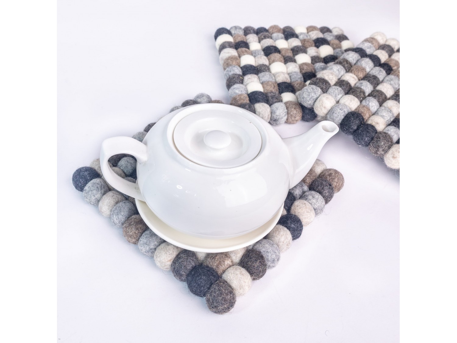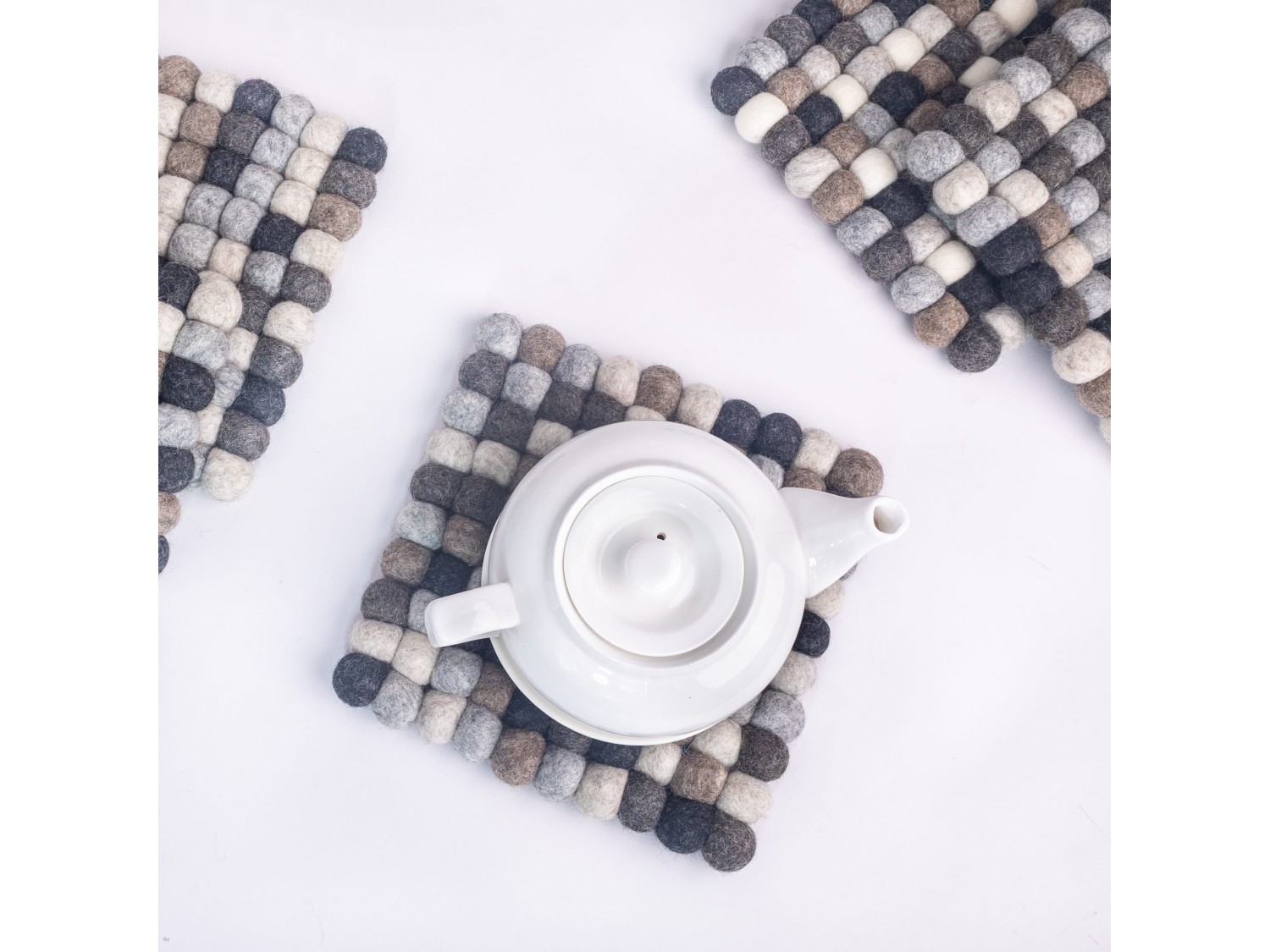 Bring warmth and simplicity to your table with our Handmade Natural Colored Square Felt Ball Trivet, thoughtfully handcrafted from 100% natural wool. Designed to protect surfaces from hot pots, pans, and serving dishes, this felt pom pom trivet adds a subtle, earthy charm to kitchens, dining tables, and serving setups. Its thick felt provides excellent heat insulation while maintaining a stylish handcrafted finish.