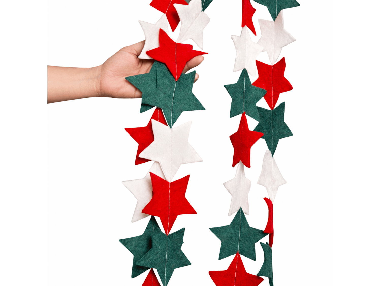 Perfect as a Christmas garland for your mantel, staircase, nursery, or holiday parties, this felt star garland adds warmth and texture to any décor. Its durable felt stars make it an ideal garland for Christmas, whether you're decorating walls, styling a white Christmas tree garland, or looking for a charming garland for tree setups.