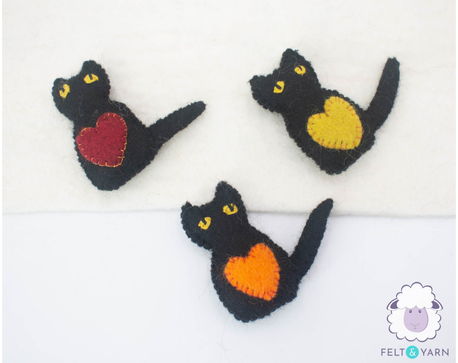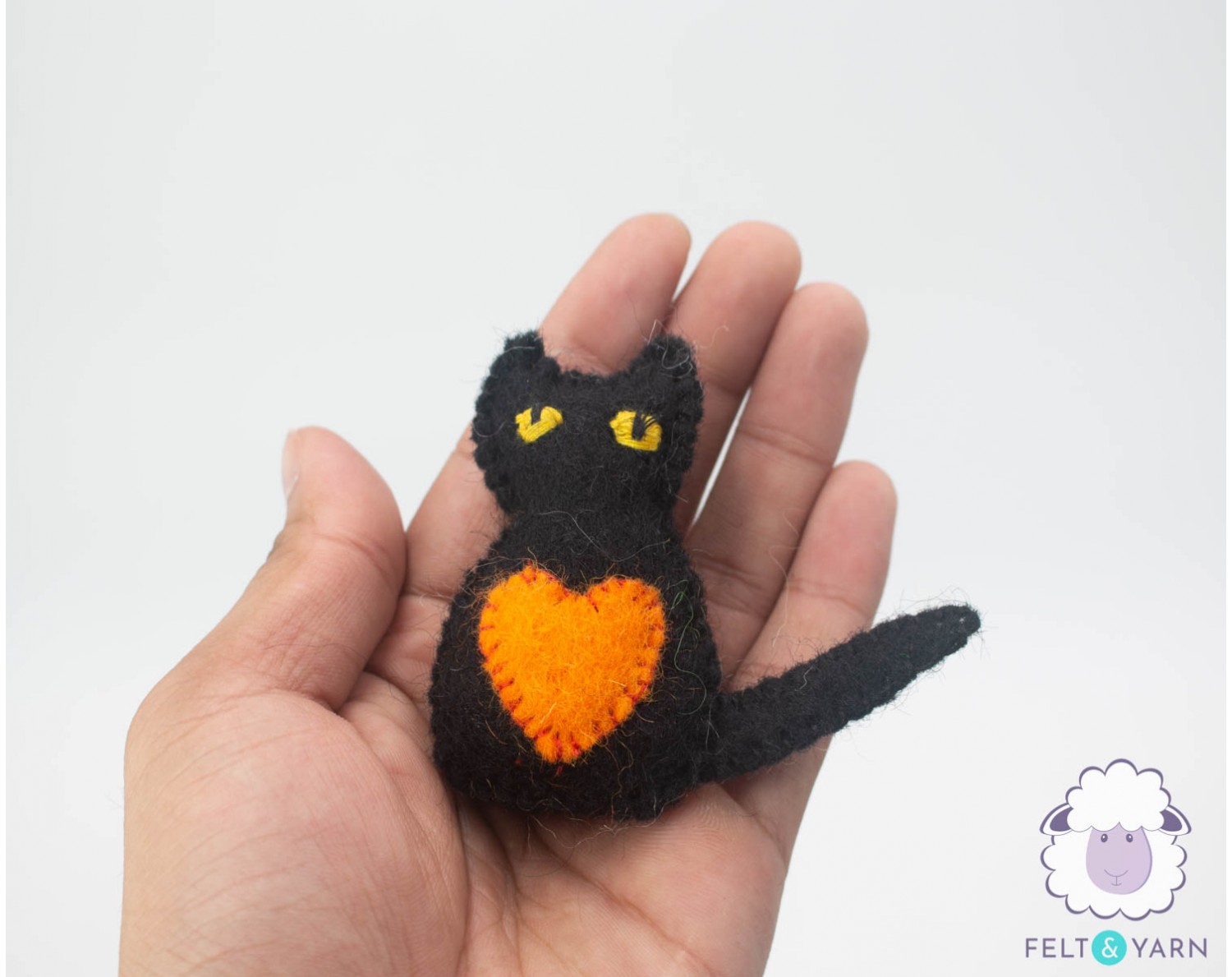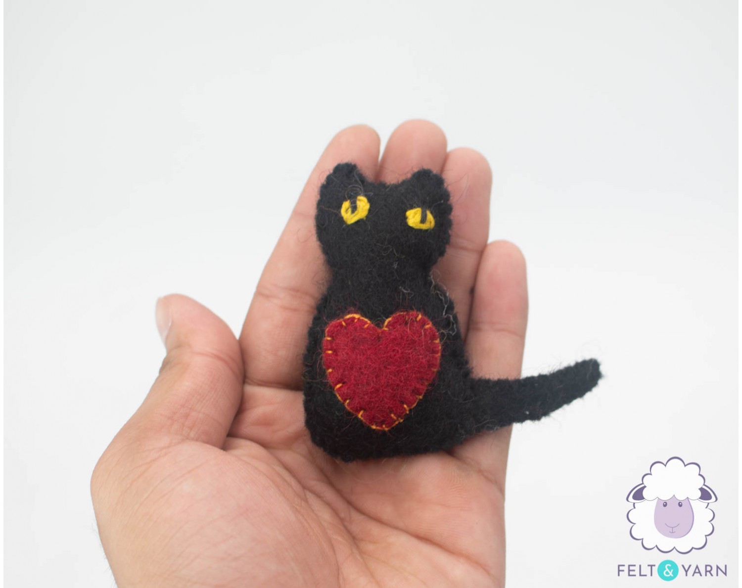 This stitched wool felt cat with a heart design is handmade from 100% natural wool sourced from New Zealand, featuring a charming cat shape, stitched detailing, and a heart accent that adds a warm decorative touch. With its soft felt texture and consistent handmade finish, it is well-suited for ornaments, gift toppers, seasonal displays, craft assortments, and retail décor collections.