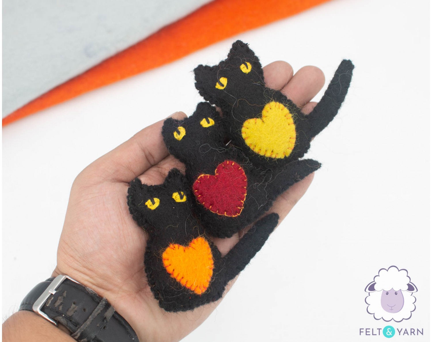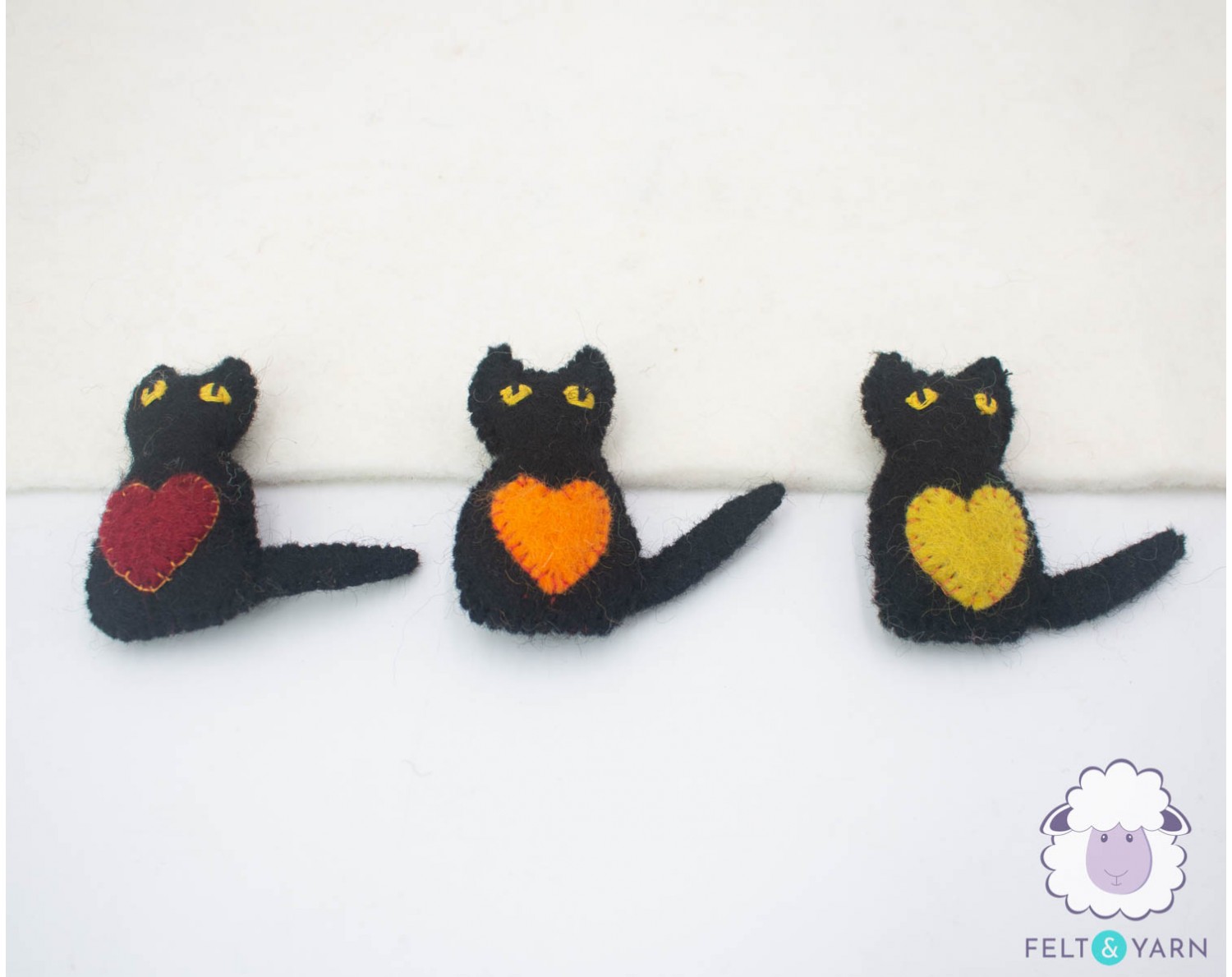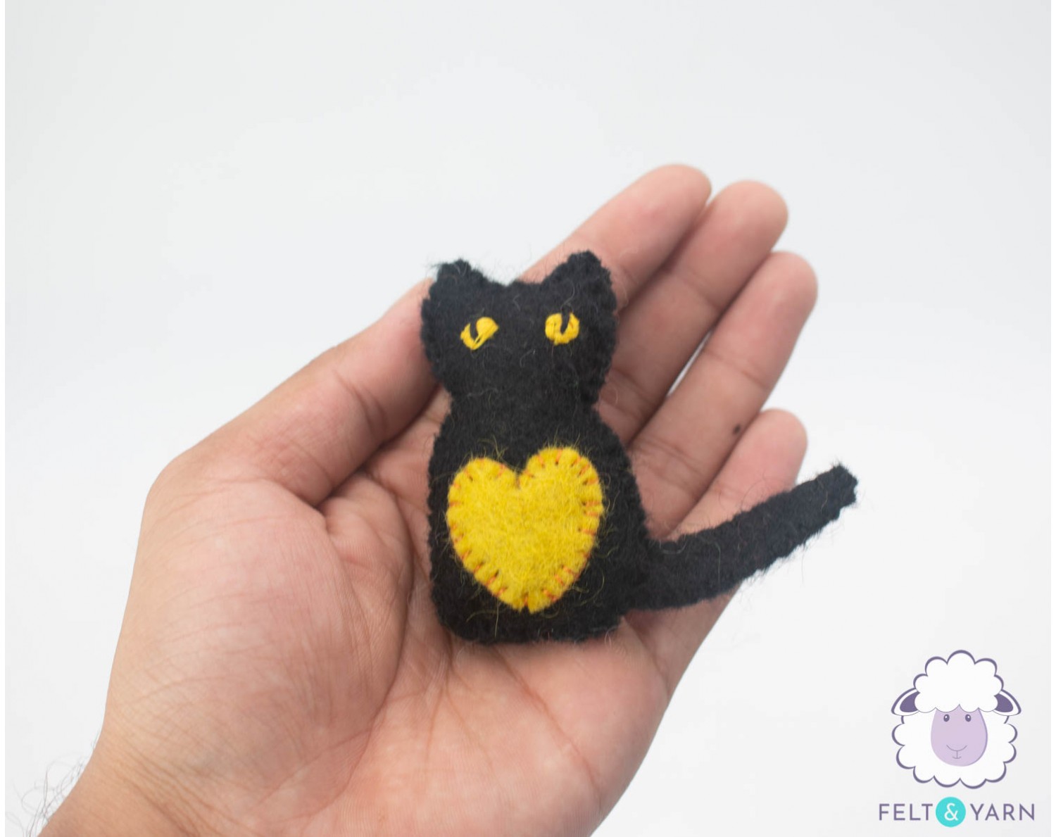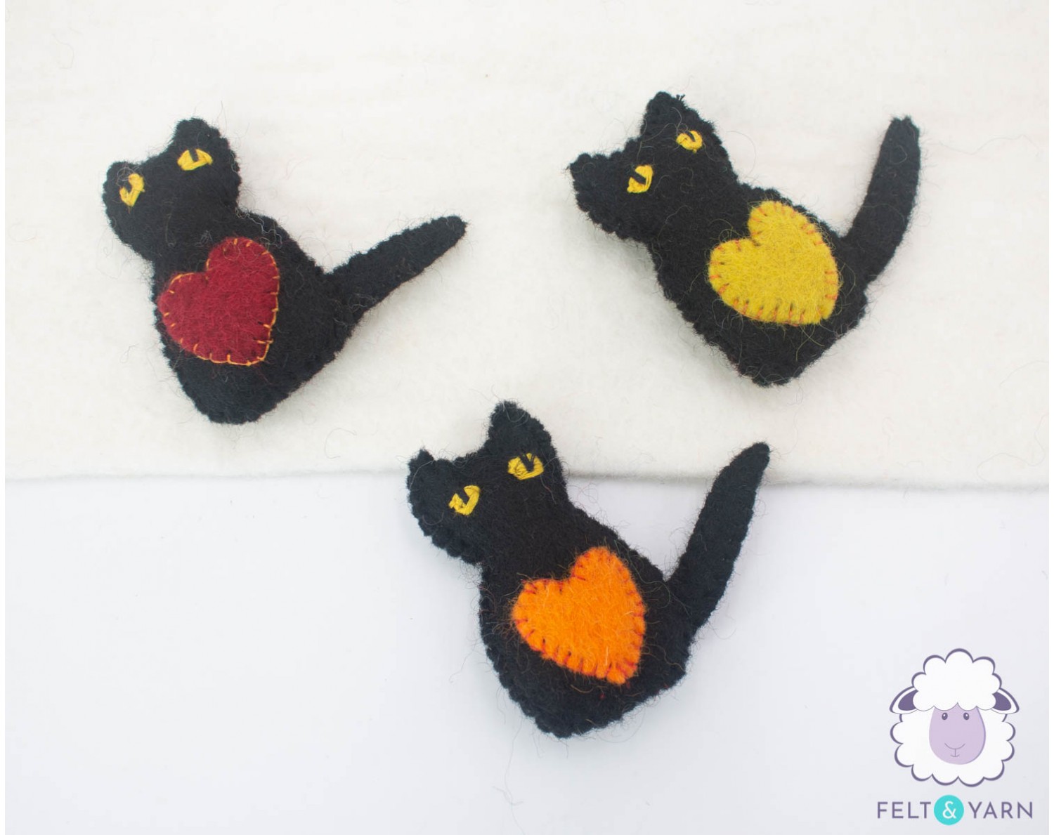 This stitched wool felt cat with a heart design is handmade from 100% natural wool sourced from New Zealand, featuring a charming cat shape, stitched detailing, and a heart accent that adds a warm decorative touch. With its soft felt texture and consistent handmade finish, it is well-suited for ornaments, gift toppers, seasonal displays, craft assortments, and retail décor collections.