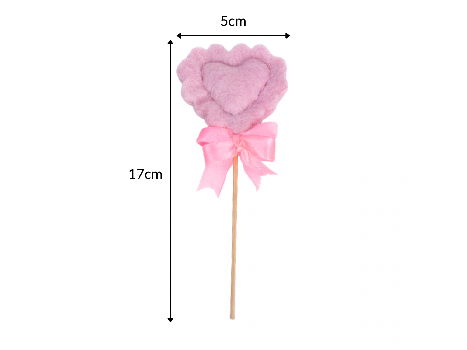 Heart Wand: 17cm, Heart: 5cm, Ribbon: 4.5cm, Stick: 11cm